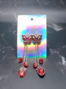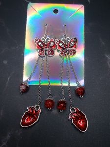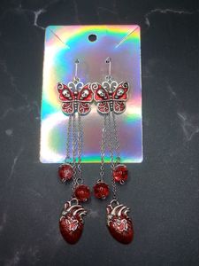 Product details for Red Skull Butterfly and Heart Charm Dangle Earrings .