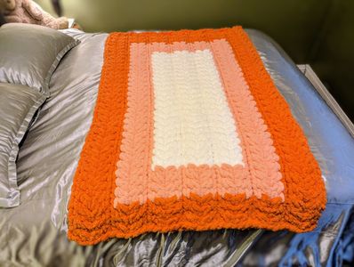 Product details for "Creamsicle" Hand-Knit Blanket - A Sweet Summer Treat.